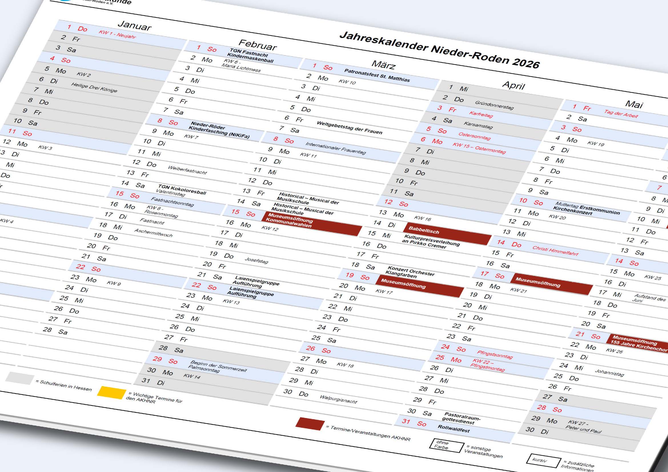 Darin finden sich schon jetzt eine Menge interessanter Termine für alle Nieder-Röder und Rollwälder.