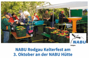 Kelterfest 4.x – am Tag der Deutschen Einheit - Vier Vereine laden ein Text NABU Rodgau Sie haben am 3. Oktober noch nichts vor? Dann kommen Sie zum Vereinsgelände am Rollwald und genießen Sie einen Tag voller Spaß, Natur und Gemeinschaft! Nach dem großen Erfolg in den vergangenen Jahren feiern die vier Vereine NABU Rodgau, Schützenverein Gamsbock, Verein für Deutsche Schäferhunde und die Pfadfinder …