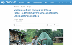 „Museumsreif und noch gut in Schuss – Nieder-Röder Heimatverein muss historische Landmaschinen abgeben“ - Artikel der Offenbach-Post auf OP-Online.de vom 11.07.2025.
