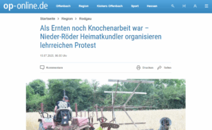 „Als Ernten noch Knochenarbeit war – Nieder-Röder Heimatkundler organisieren lehrreichen Protest“ - Artikel der Offenbach-Post auf OP-Online.de vom 15.07.2025.